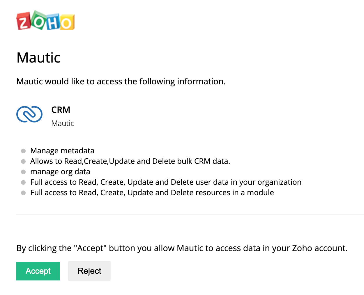 Push Contacts and/or Companies to this Integration - push all Contacts and/or Companies from Mautic into ZohoCRM